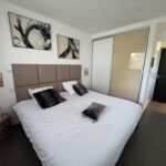 La Chagall est l’une des deux suites nichées au niveau 1 de la villa. Caractérisée par des tons taupe ou charbon, voilà un espace très contemporain décoré harmonieusement au moyen de tableaux qui nous rappellent Soulages. Belle salle de bain avec des baies vue sur la garrigue qui génèrent une luminosité énergisante. Petit déjeuner sur demande, 12 sur par personnes, payables sur place.